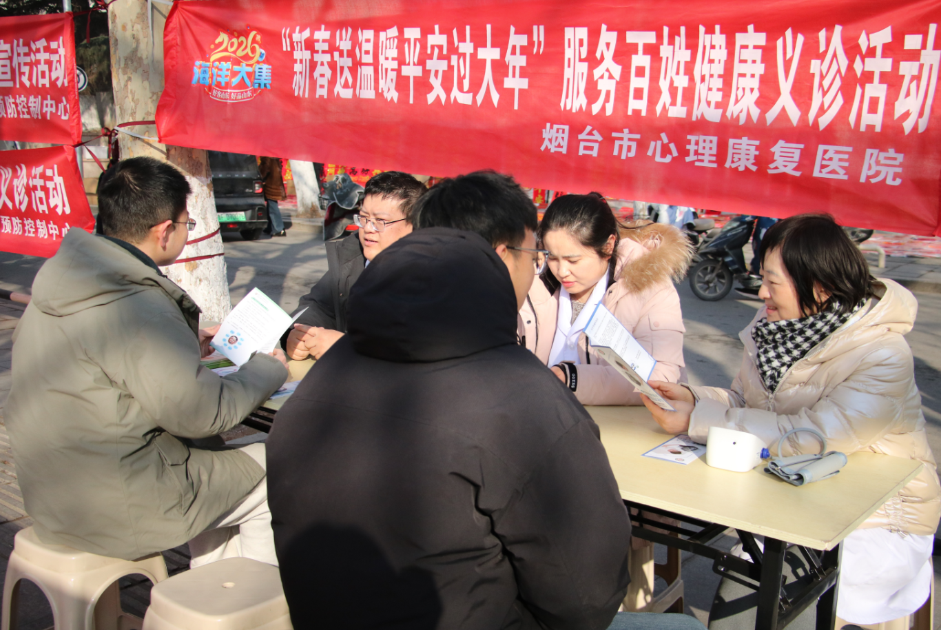 活动中,义诊服务队的医护人员向过往市民发放心理卫生宣传手册,科普实用的心理健康知识,助力市民欢乐过大年。义诊共接待心理咨询群众50余人次,健康体检100余人次,发放各类宣传材料500余份。