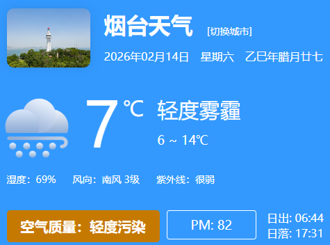 东部海域(开发区至牟平区)将有0.4米的小浪增至1.0米的轻浪,风浪向南转东北;平均水温:1.9-2.5℃;