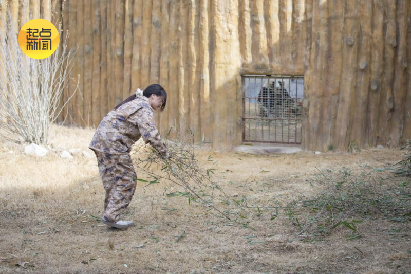聊起熊猫,这个看起来不善言谈的女孩却能侃侃而谈。每一只大熊猫名字的由来、出生时间、饮食习惯……杨丽都能准确地回答。自2022年熊猫基地一期工程建成投用后,杨丽便来到这里,当起了“熊猫妈妈”,负责大熊猫的日常饲养管护、健康监测,以及科研样本采集等工作。