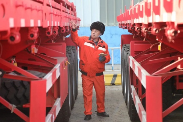 话音刚落,他便从工装口袋里掏出卷尺,卷尺的刻度已被磨得有些模糊。从顶部受力点到底部支撑位,从侧面宽度到重心预估距离,一次次测量、一点点核对。每测一次,便快速在本上标注数据,随即又折返回来重新测量,偶尔皱起眉头,手指反复比画,嘴里轻声念叨着。寒风吹得他的手指僵硬,握铅笔的力道却始终沉稳,直到敲定最优吊装方案,他才直起身,搓了搓冻僵的指尖,往手心哈了口热气。