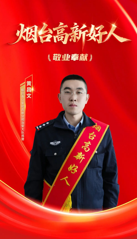 黄昌文,现任烟台市公安局高新分局治安大队民警。自投身公安事业以来,他始终恪守“对党忠诚、服务人民、执法公正、纪律严明”的总要求,以坚定的政治信念、深厚的为民情怀和过硬的业务本领,在平凡岗位上书写不凡答卷,用实际行动践行“人民公安为人民”的庄严承诺。