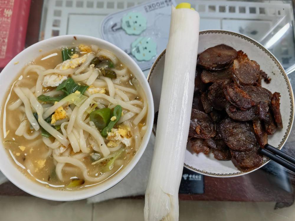 年龄逐渐大了,我很早就开始追求这种至味的清欢了。冬天仿佛能给人留出斟酌“如何吃”的无限时空。因为冬天的脚步如天空的太阳一样行进很慢,倘若心不虚浮,不留恋那些如过眼云烟的浮华,整个人就能忙里偷闲的静下来。周末回济南,我就按着当年从母亲那里传承和赓续过来的习惯。有时炒个鸡蛋,下几碗面条,煮到火候放几片青绿的菜叶,那味道真是清鲜清新。之前下面条是等着水开后再把面条放进去,煮出来的面条汤少,太浓,舀到碗里就有面没汤了。后来妻子教了法,炝锅倒水后接着下面条,开了后关火盖盖,5分钟后舀出来,有汤有面,是真正的汤面。不想炒菜了,就切点成武酱大头,倒点香油,就着喝汤吃面,好喝好吃。那天妻子还说我的刀工突飞猛进,咸菜丝切得如酒店大厨切得一般,想想还是心静,切的时候专注,心无旁骛,如此下去,说不定自己也能成大厨了。