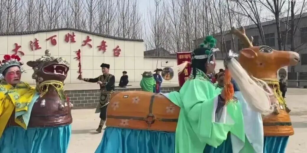 泰安百兽图源于清光绪二十三年(1897年),又称“百兽竹马”,是山东独有的民间舞蹈,2006年被列入国家级非物质文化遗产名录。其以“八仙骑兽渡海为西王母祝寿”为核心主题,融合驱疫降福的民间祈福文化,承载着百姓欢庆避邪、祈愿太平的美好期许。表演由9名演员组成,分为马童和八仙,分“串街”“打场”两部分,以“跑马”为核心动作,队形有“劈四门”“长蛇蜕皮”等样式。伴奏以鼓、锣、钗为主,辅以唢呐、笙、笛,八仙各有专属唱词,涵盖太平、善恶、风调雨顺等内容。演员肩背兽形布制道具,兽身下沿布帘遮足,造型生动,极具地方特色。自2006年起,新泰市及羊流镇政府多措并举推动其活态传承,开展技艺抢救、人才培养等工作。其常年参与春节民间汇演,深受群众喜爱,是传承民俗文化的重要载体。