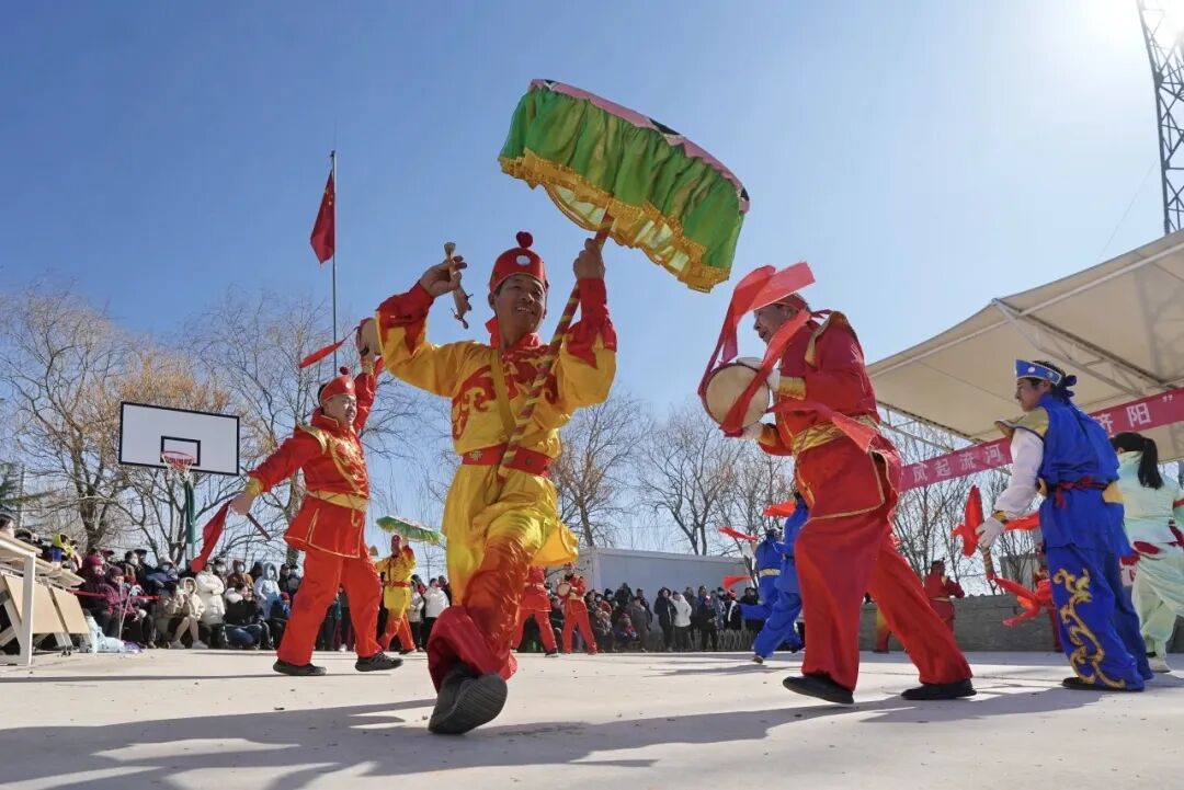 济阳鼓子秧歌是根植于鲁北平原、承载黄河文化的国家级非物质文化遗产,孕育于济阳这片黄河滋养的土地,是当地人民精神风貌的生动写照。表演兼具雄浑气势与地域灵韵,分为“街筒子”行进表演与“跑场子”场地表演,以伞、鼓、棒、花为核心角色,搭配铿锵锣鼓,尽显济阳人民的豪爽与热忱。武场节奏明快、舞姿刚劲,鼓点铿锵震彻全场;文场流畅舒缓、步履轻盈,场图变化精妙,素有“武场看打、文场看走”之说。其融合当地农耕文化与民俗底蕴,动作粗犷豪放又不失灵动,队形错落有致、气势恢宏。