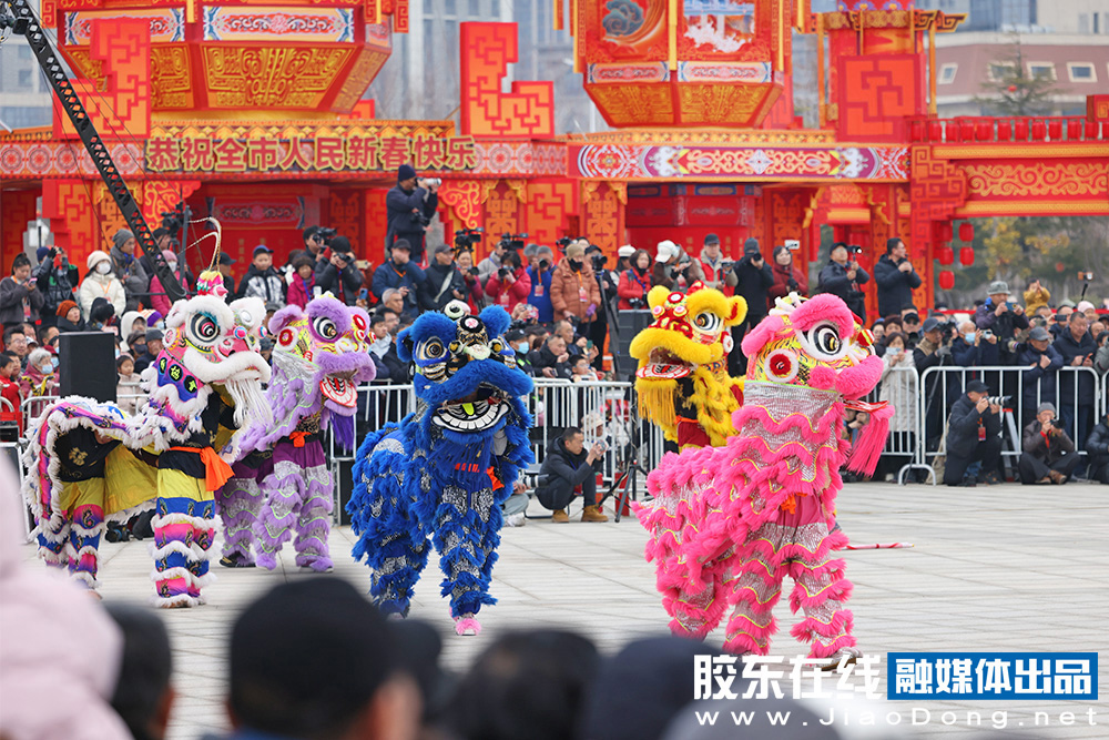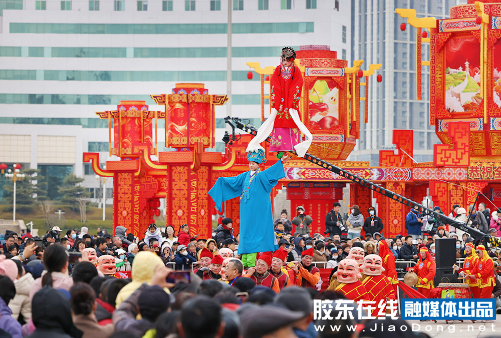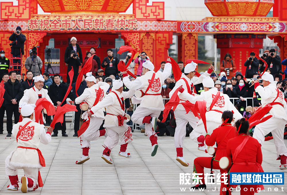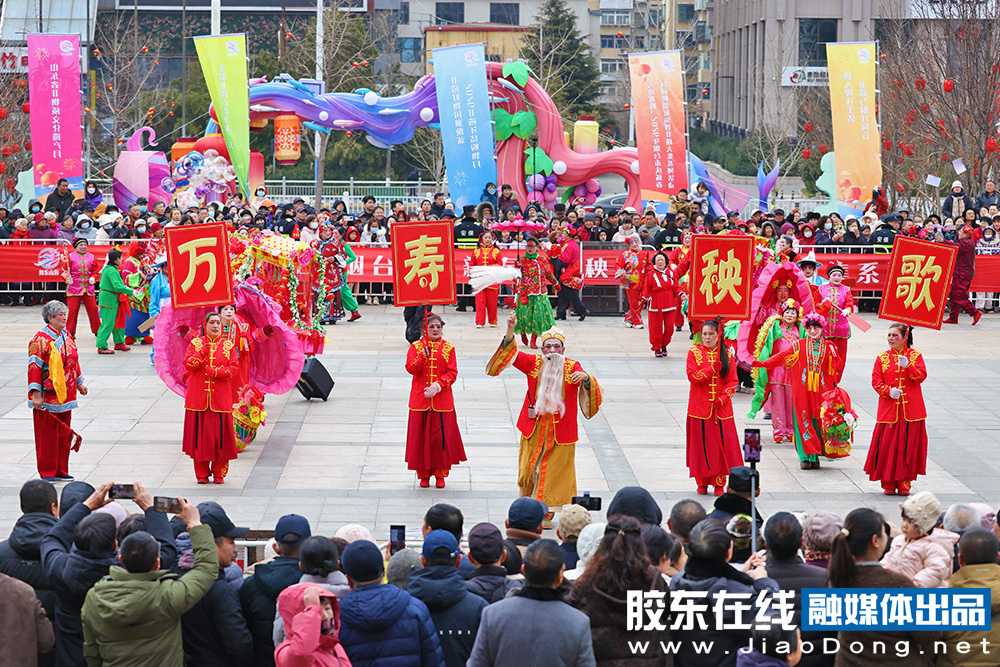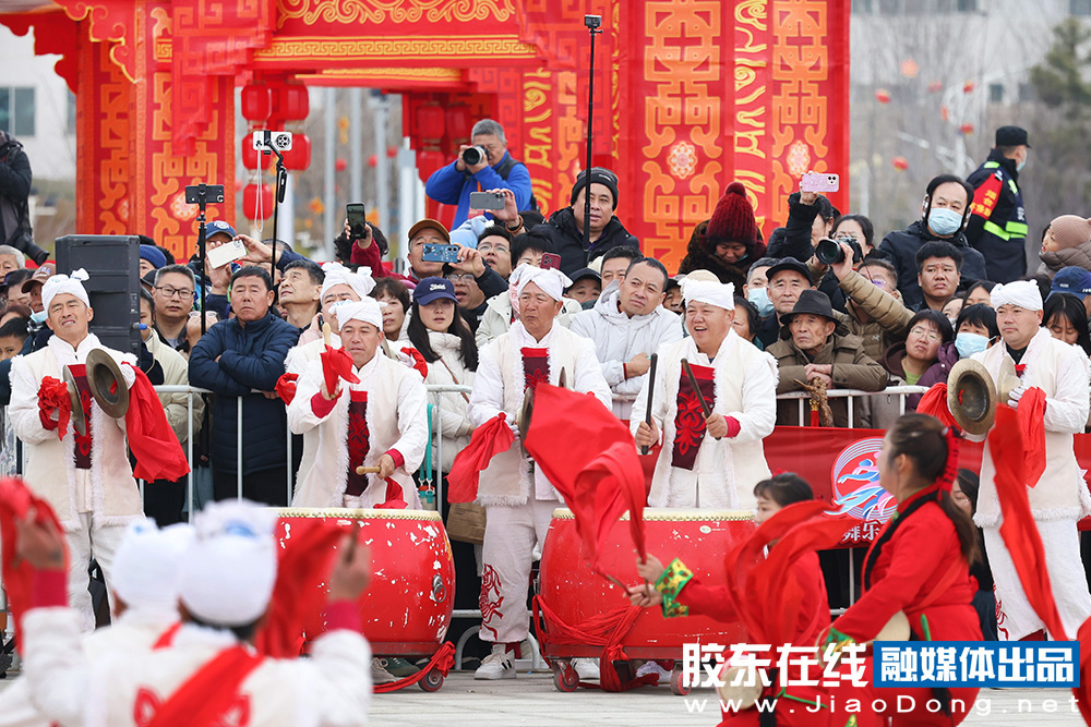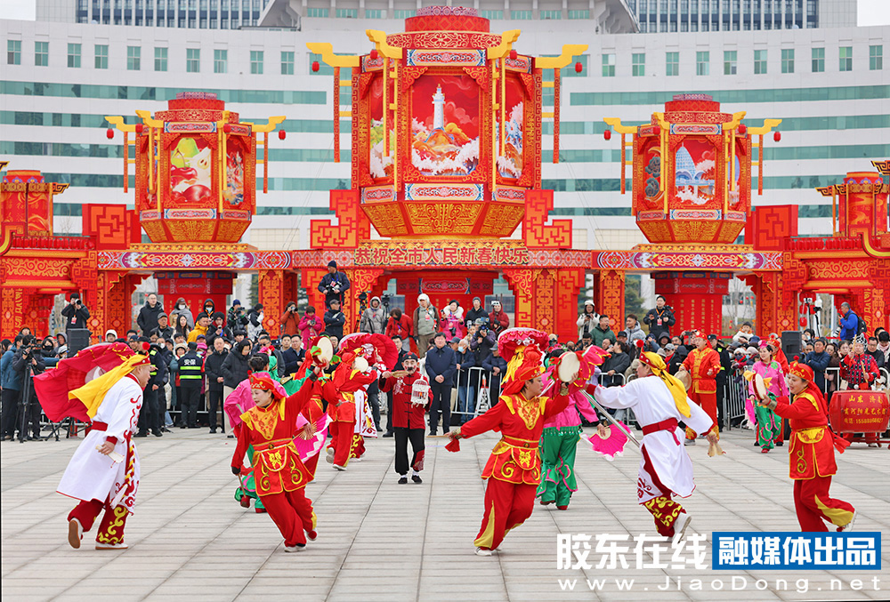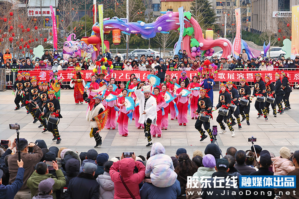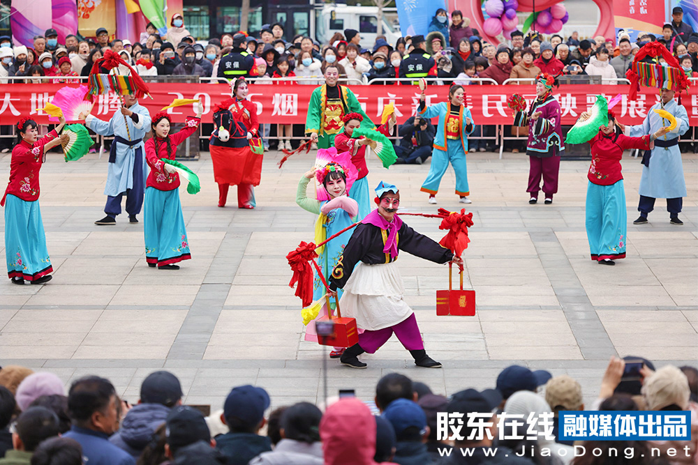 胶东在线2月26日讯(记者 李刚 摄影报道) 26日,由烟台市文化和旅游局主办,烟台市文化馆(烟台市非物质文化遗产保护中心)承办的“大地欢腾”2026年烟台市庆新春民间秧歌展演暨非遗大集系列活动在烟台市民休闲公园与烟台文化中心广场举行。来自全国的多支国家级非遗秧歌队伍与本地特色秧歌同台献艺,让市民一次看遍中国秧歌的“精气神”!