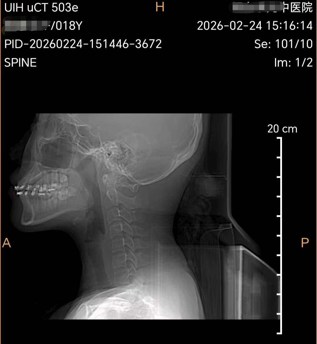 拍片显示,这名18岁的少年颈椎退化犹如50岁中年人状态。理疗科医生表示,青少年骨骼肌肉尚未发育成熟,春节假期里,不少孩子抱着手机、平板度过全天,长时间低头、坐姿歪扭,缺乏运动,导致颈肩僵硬、转头困难,甚至出现头晕、头痛、手麻等症状,部分青少年还查出颈椎生理曲度变直、肌肉严重劳损。“这种长期不良姿势造成的伤害,比成年人更深,要是拖延不治,很容易影响体态和生长发育,留下长期隐患。”