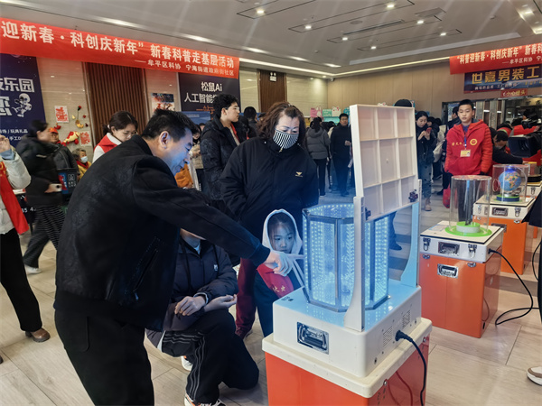 活动现场,科普大篷车带来的“电影的原理”“雅各布天梯”等经典互动展品一经亮相便迅速成为全场焦点。孩子们争先恐后地动手操作,在亲手触发“电影的原理”中视觉暂留现象的瞬间、亲眼目睹“雅各布天梯”高压放电产生的绚丽弧光时,将书本上晦涩的物理原理转化为直观可感的科学体验,现场惊叹声此起彼伏。无人机体验环节更是将活动推向高潮,科技馆工作人员从飞行控制原理讲起,逐步演示操作技巧,并指导现场观众轮流操控无人机起飞、转向、精准降落。当无人机在空中灵活穿梭、稳稳着陆时,前沿科技的智能与精准变得触手可及,极大地激发了公众尤其是青少年对无人机技术的浓厚兴趣,现场掌声与欢呼声不断。此外,活动还联合滨州医学院烟台附属医院、蓝天爱心志愿服务队等单位,同步开展了急救知识科普、毛线花制作展示、胶东传统木作工艺展示等丰富多彩的互动项目,进一步丰富了活动内容,提升了市民的参与感与获得感。