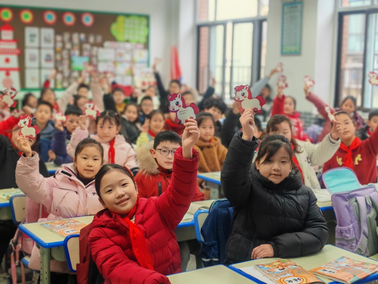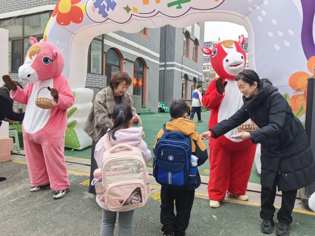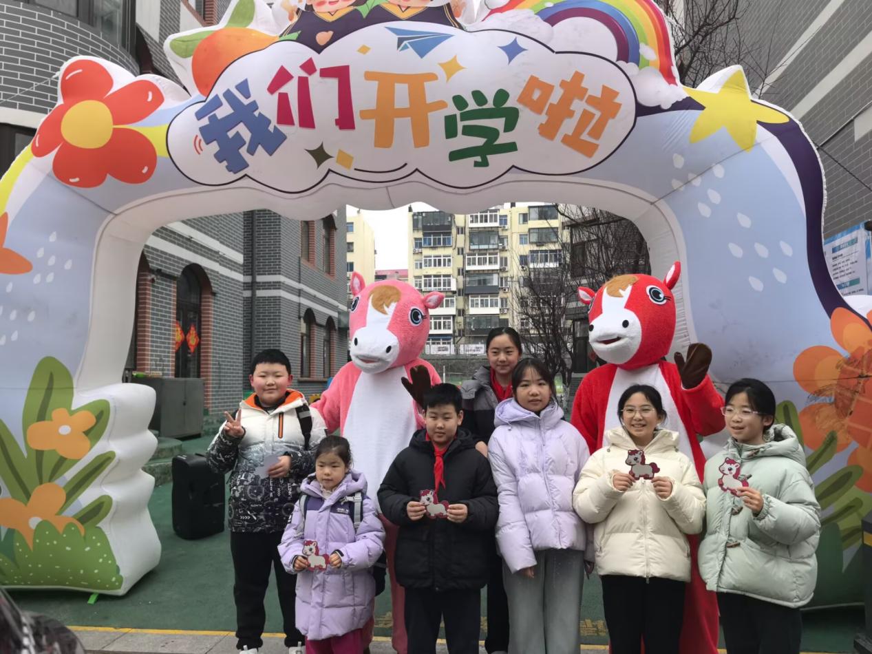 胶东在线3月5日讯(通讯员 杨成艳)2026年3月5日,芝罘区潇翔小学以“雷锋精神润童心,少年逐梦向未来”为主题,举行了富有教育意义的春季开学典礼。清晨,典礼在温馨的欢迎仪式中拉开序幕:老师们身着活泼的“马”造型人偶服装,在校门口与每一位入校学生击掌互动,传递新学期的祝福与鼓励。校领导向学生们分发了精心设计的“马年愿望卡”,寓意新的一年承载梦想、驰骋向前。
