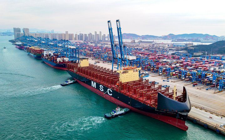2026年1月1日,我国首套真空式自动系泊系统在山东港口青岛港全自动化集装箱码头正式投用。当日,“地中海沙特阿拉伯”轮通过真空式自动系泊系统停靠青岛港码头。新华社发