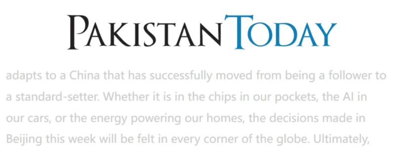《今日巴基斯坦》网站近日刊文聚焦今年中国全国两会期间的政府工作报告和“十五五”规划纲要草案,认为从中可以看出,中国正在进行一次深刻转型,“这将重塑全球经济格局”。