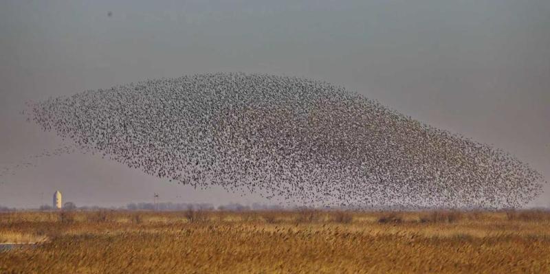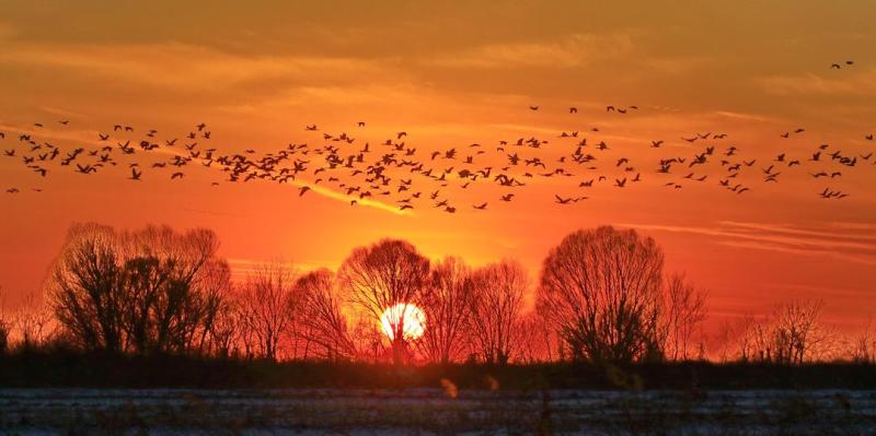 (冬日傍晚成群的鸟类形成一幅诗意画面。赵文昌摄)