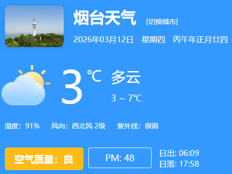 烟台市海洋环境监测预报中心发布24小时海洋预报(3月12日0时-3月13日0时)