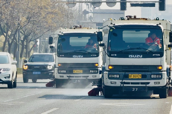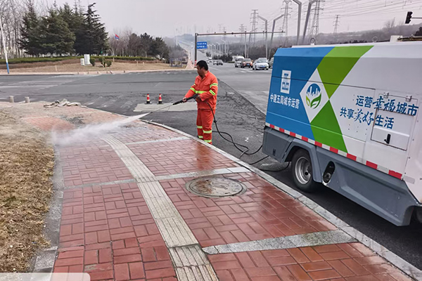 为全面提升道路洁净度,组织督导项目公司推行人机协同深度保洁模式,优化机械化作业流程,每日调配70余台清洗、清扫机械车辆上路作业,采取“冲、扫、洗、吸”四位一体联合作业方式,对辖区主次干道开展全覆盖、无死角深度清洁。作业过程中,重点针对路牙根部、路面缝隙等易积尘区域精准冲洗,还原路面本色。同时依托路养车机动灵活的优势,对公交站亭、交通护栏等进行精细化冲刷,实现路面洁净与公共设施周边环境整洁同步达标。
