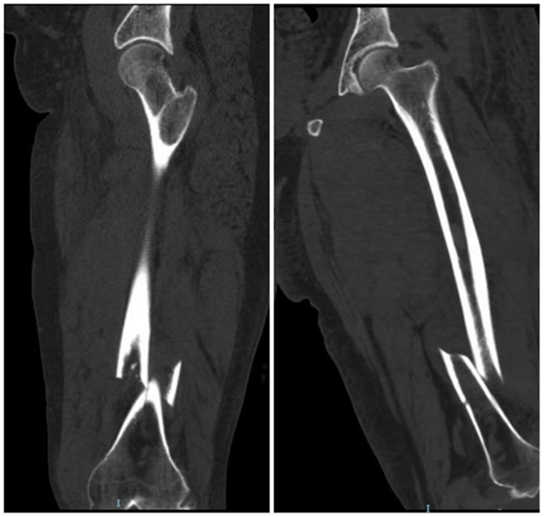 据悉,外地务工人员李先生(化名)在工作期间不慎意外受伤,当即出现左大腿剧烈疼痛、活动受限等症状,经检查确诊为左股骨干骨折。在外院首诊时,因患者合并血友病这一特殊疾病,围术期出血风险极高,常规诊疗方案无法实施。为寻求更专业的救治,李先生紧急转入烟台山医院东院创伤二科接受进一步治疗。