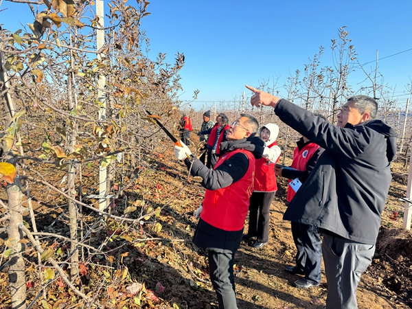 一名党员就是一面旗帜。活动中,身着党徽标识的党员农技人员、党员志愿者穿梭于各果园之间,主动对接果农需求,针对不同树龄、不同长势的果树,分类制定修剪和管理方案。