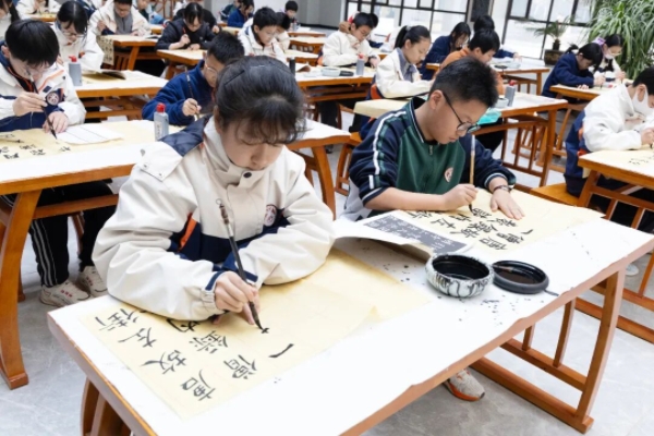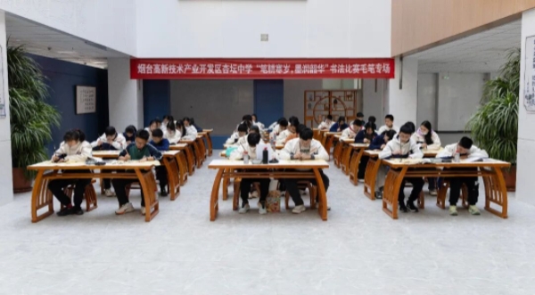 胶东在线3月17日讯(通讯员 郭健 实习编辑 黄洪娇)3月12日,烟台高新区杏坛中学举行“笔耕寒岁,墨润韶华”学生规范汉字书写比赛。来自六、七、八年级的学子们,以笔为媒,以墨会友,在横竖撇捺的流转间感受汉字之美,于点提钩折的韵律中传承中华文脉。
