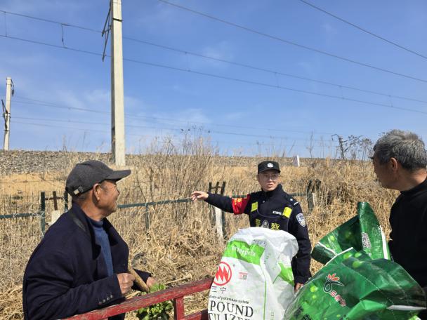 春季是沿线村民春耕生产、户外活动增多的季节,也是铁路线路安全隐患的易发期。珠玑站派出所民警沿着铁路防护网开展徒步巡查,重点排查防护设施破损、沿线杂物堆积、违规耕种等安全隐患,做到不留死角、不漏一处,及时发现并消除潜在风险。同时,针对春耕时节村民在铁路沿线劳作频繁的特点,民警主动走进田间,与正在务农的村民面对面交流,用通俗易懂的语言讲解铁路安全法律法规,重点宣传禁止在铁路沿线放牧、焚烧秸秆、私设通道、抛掷物品等危害铁路安全的行为,以及相关法律后果,结合典型案例,细致讲解铁路安全知识,提醒村民春耕生产时远离铁路线路,切勿翻越防护网进入铁路保护区,引导大家自觉遵守铁路安全规定,共同守护铁路运输安全。