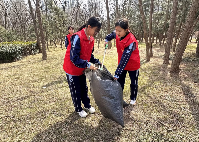活动当天,阳光明媚,春意盎然。同学们身着统一的红色志愿马甲,带着垃圾袋、垃圾夹、清洁布等工具,有序前往活动地点。在公园内,大家分工协作,有的手持垃圾夹仔细捡拾草丛中的纸屑、塑料袋等杂物,有的将分类打包的垃圾集中投放,不放过任何一处卫生死角,让公园环境焕然一新。随后,同学们又来到街边共享电动车停放点,认真擦拭车座、车把,将乱停乱放的车辆逐一摆放整齐,为市民出行营造了干净整洁的环境。