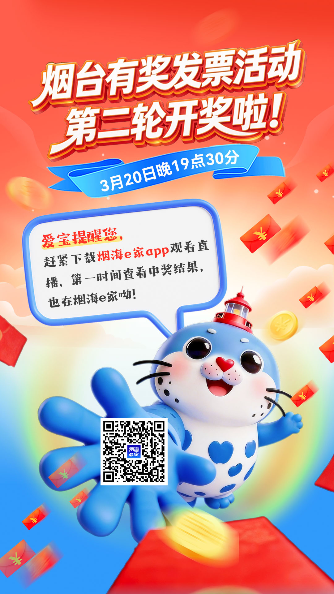 3月20日晚7点半,烟台有奖发票活动第二轮开奖啦!