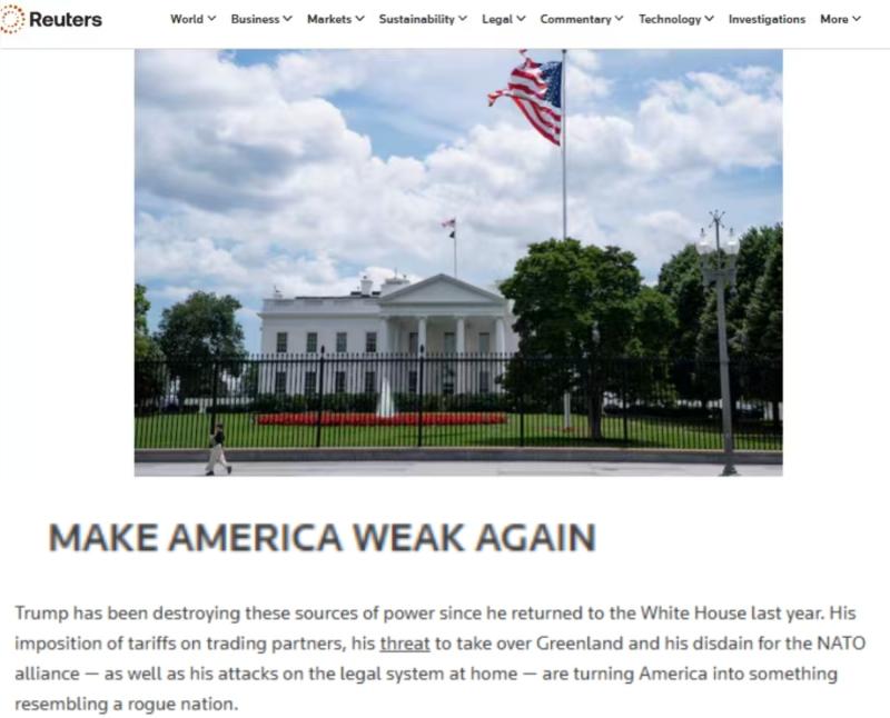 文章称,自去年重返白宫以来,美国总统一直在削弱这些同盟关系。他对贸易伙伴加征关税,威胁接管格陵兰岛,对北约联盟表现出轻蔑态度,同时还对国内法律体系发起攻击,这些都在使美国逐渐呈现出“离经叛道的国家”的特征。