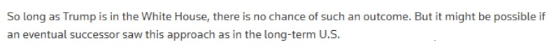 文章分析,美国未来存在多种可能。一是,美国重新退回其周期性出现的孤立主义阶段。还有一种是,美国总统对较弱对手发动更多军事行动,从而进一步削弱全球秩序。