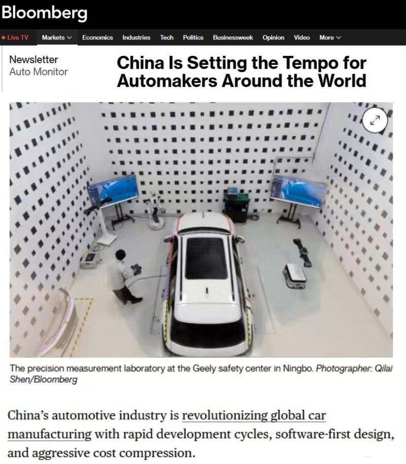 彭博社近日刊文称,几十年来,汽车制造商一直以德国工程技术、底特律的规模效应或日本车的可靠性为标杆来衡量自身。如今,他们的目光投向了中国,因为中国的企业正以快速开发周期、软件优先设计及成本显著降低,重塑全球汽车制造业格局。