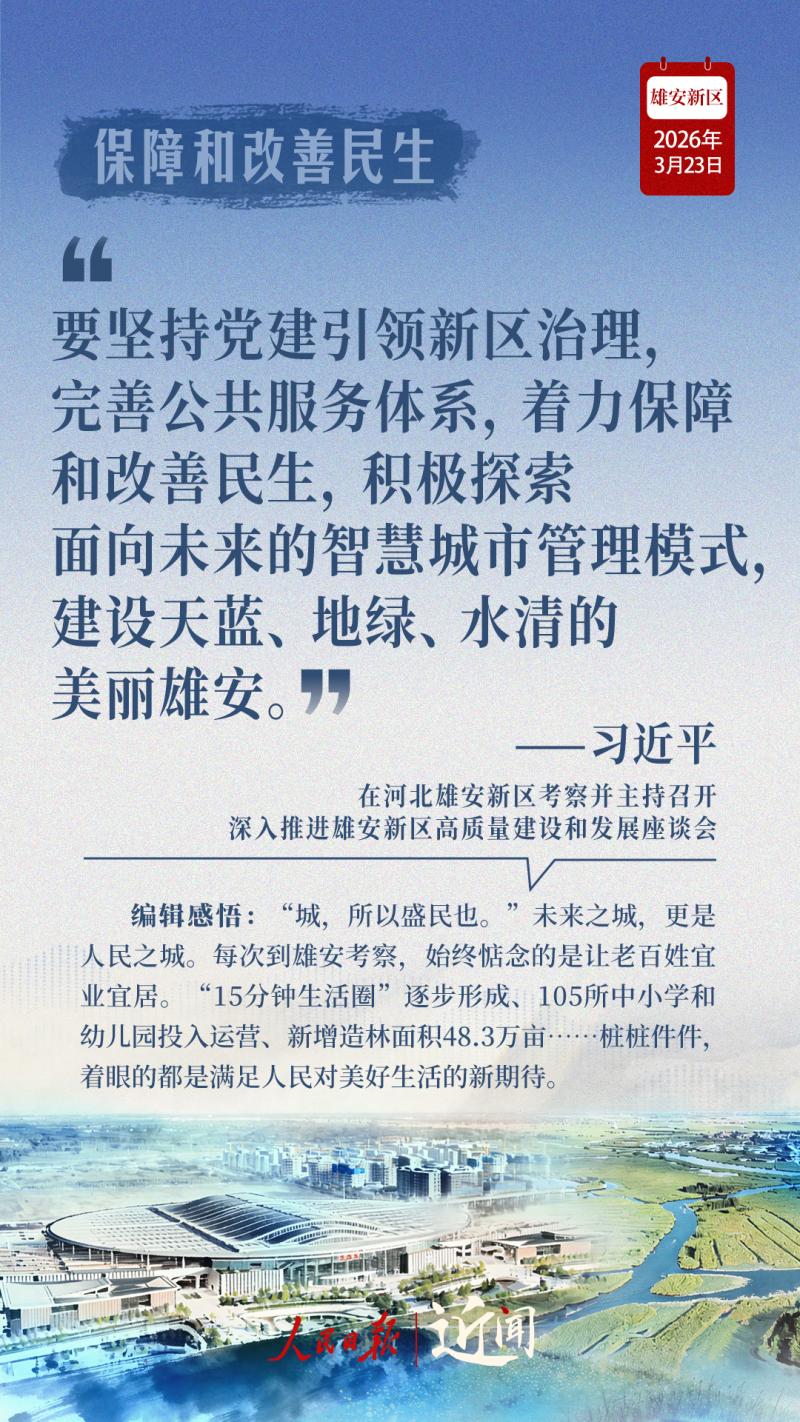 9年时间,从一块地到一张图,再到一座城,“党中央始终给予最大的希望”;从第一次到雄安时在安新县主持召开的一场小型座谈会,到高标准高质量推进雄安新区建设座谈会,再到深入推进雄安新区高质量建设和发展座谈会,一步一个脚印,刻印下现代化“未来之城”的拔节生长。
