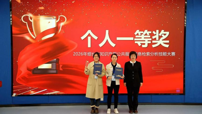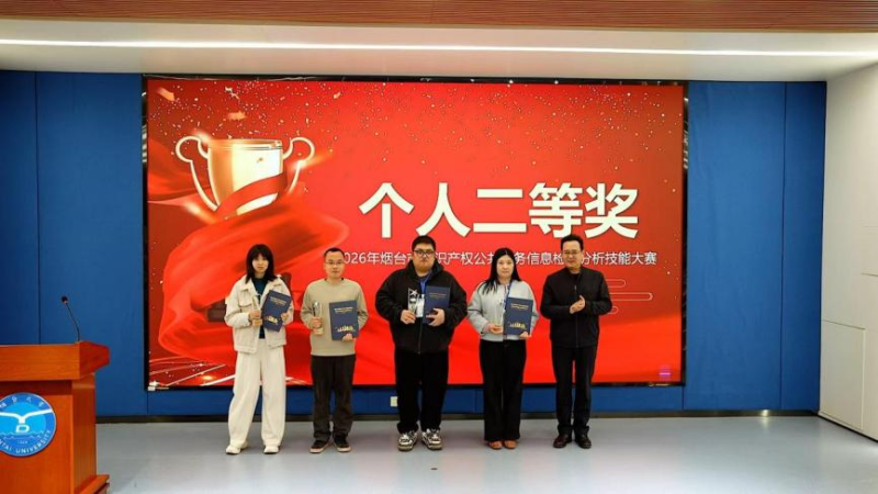 3月25日,2026年烟台市知识产权公共服务信息检索分析技能大赛决赛及颁奖典礼在烟台大学圆满落幕。本次大赛由烟台市市场监督管理局主办,烟台市知识产权保护中心承办,烟台大学、星河智源科技有限公司协办。本次大赛共评选出一等奖2名、二等奖4名、三等奖6名及优秀奖若干名。烟台大学党委常委、副校长王丽,烟台市市场监督管理局党组成员、三级调研员高冬,烟台市知识产权保护中心主任张竹青等领导出席活动。