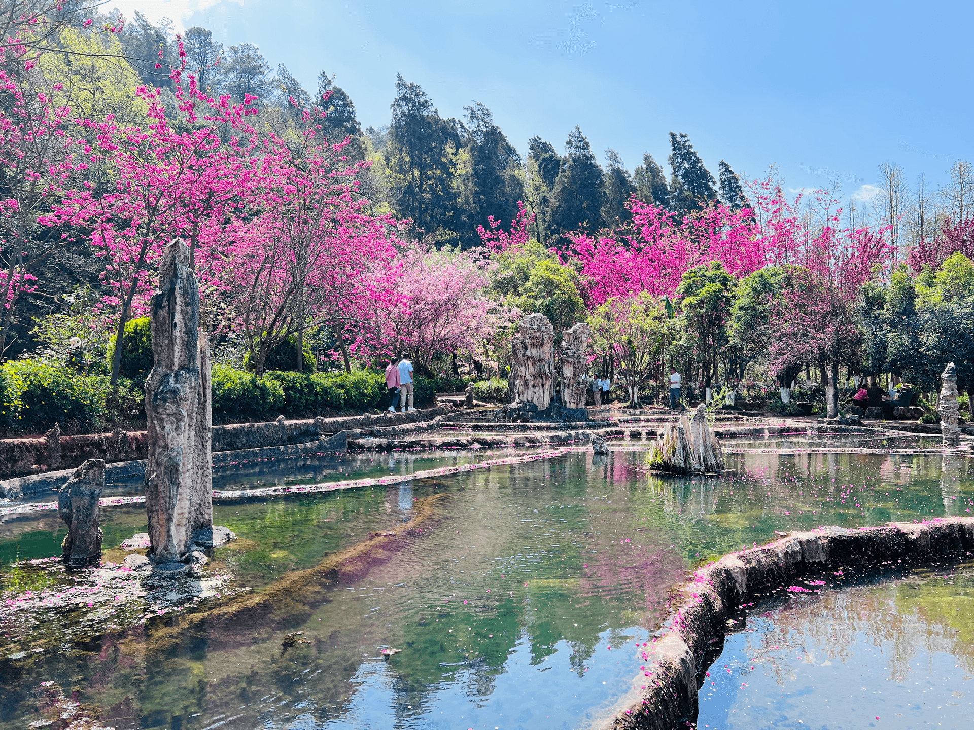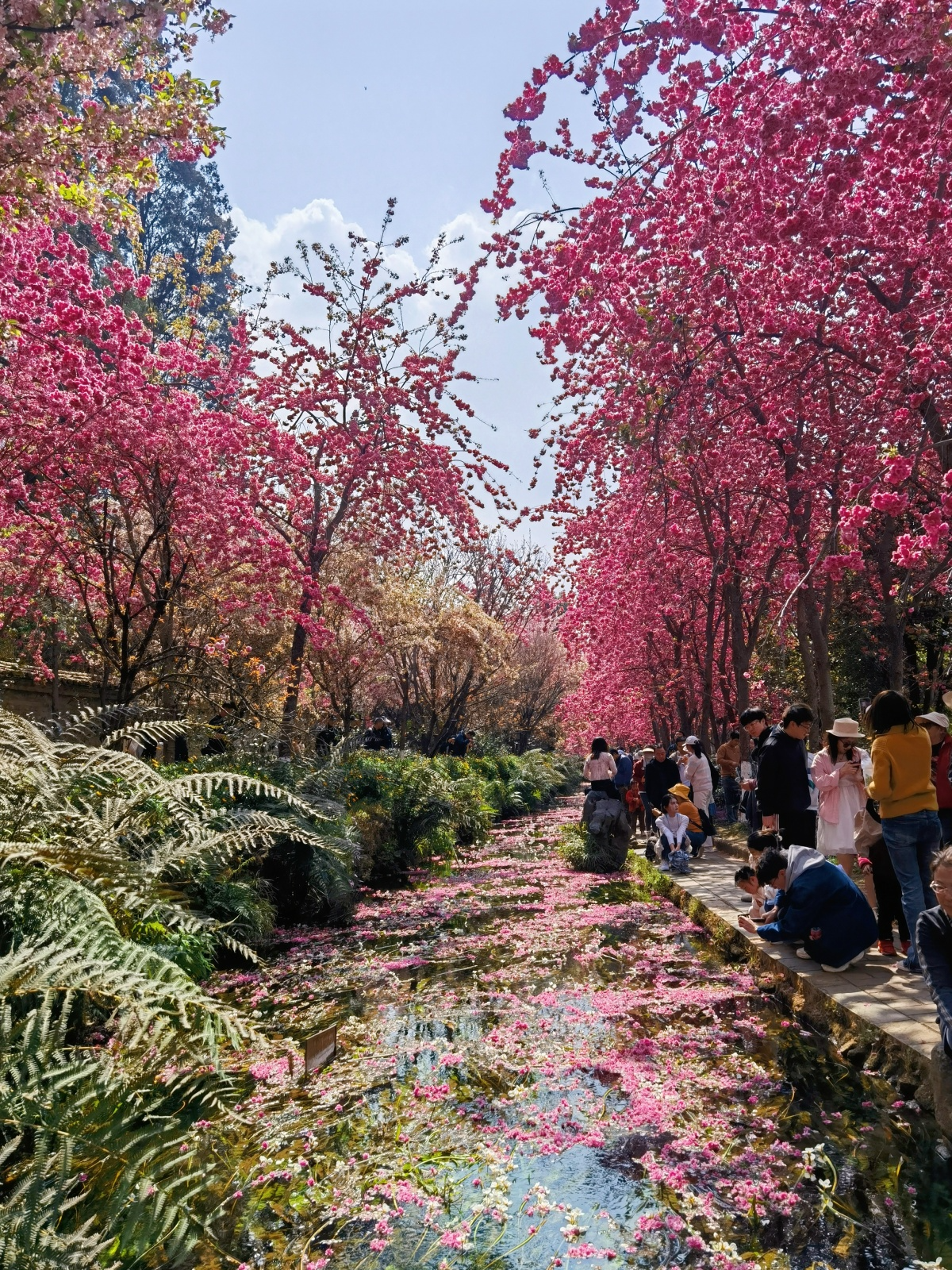 上午:庾园(樱花民国风)→ 步行约5分钟 → 大观楼(紫藤瀑布)→ 中午可在附近品尝过桥米线