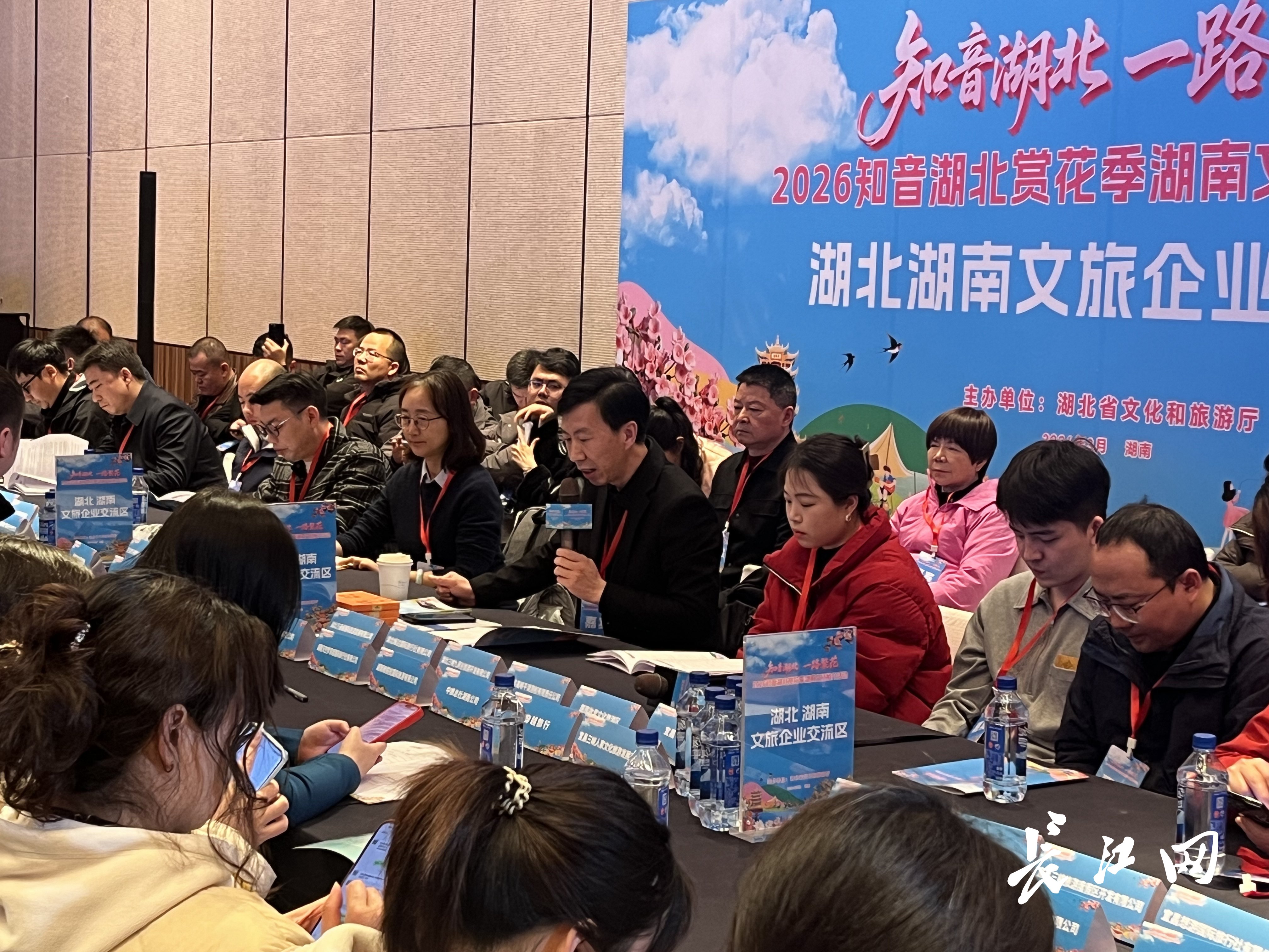 “知音湖北”赏花季长沙文旅推介会上,湘鄂两省文旅企业代表面对面交流。 记者万建辉 摄