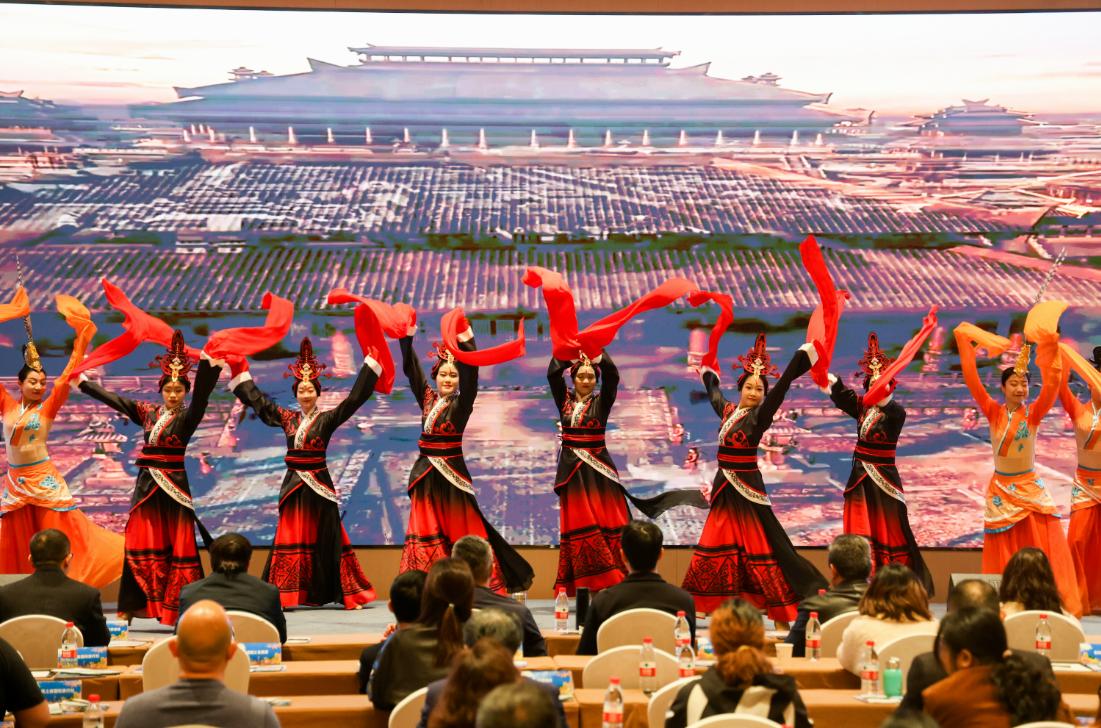 在湖南岳阳举办的推介会上,湖北文旅为岳阳文旅界带去了具有浓郁楚文化风格的歌舞。 湖北省文旅厅供图