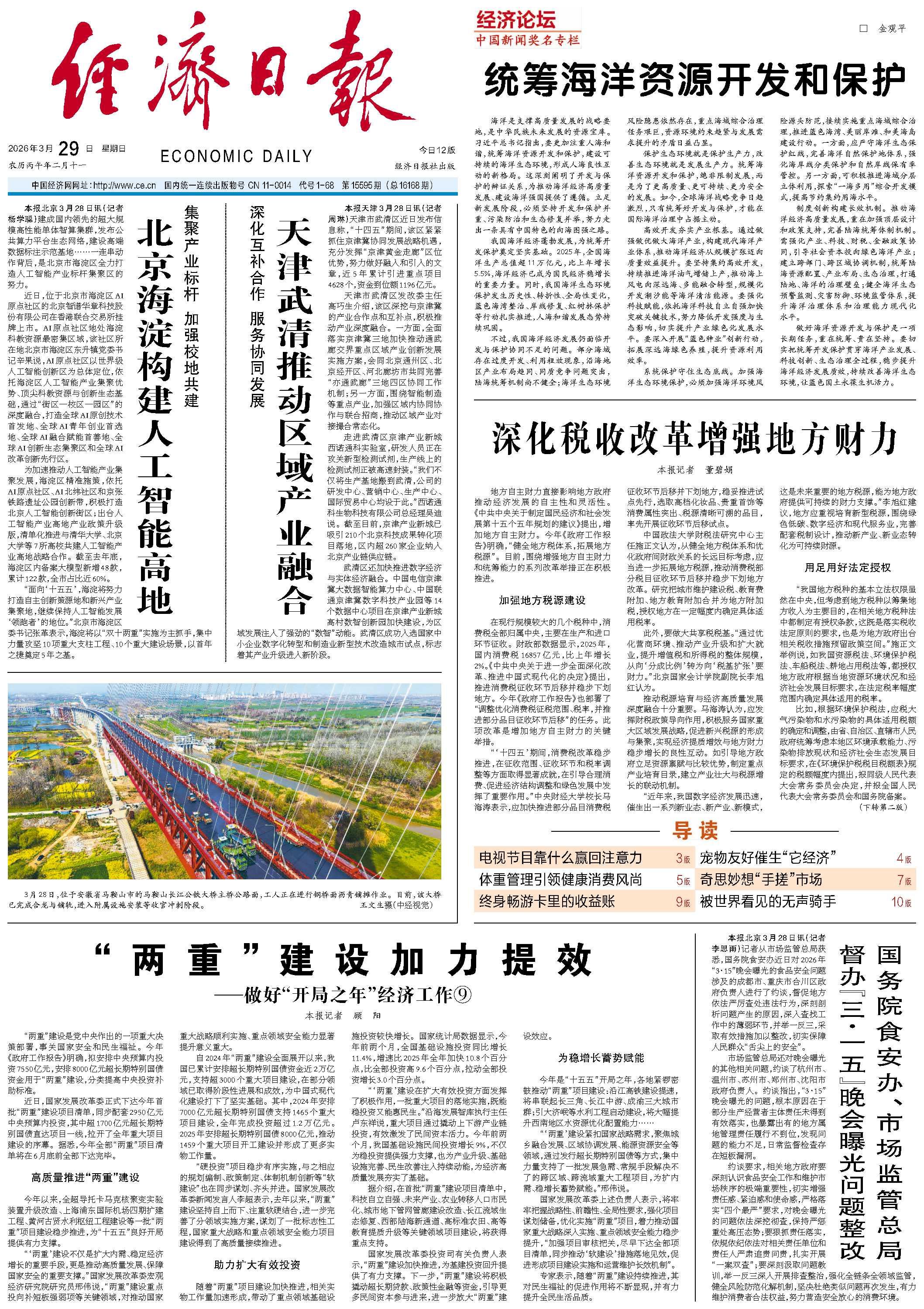 “硬投资”项目稳步有序实施,与之相应的规划编制、政策制定、体制机制创新等“软建设”也在同步谋划、齐头并进。国家发展改革委新闻发言人李超表示,去年以来,“两重”建设坚持自上而下、注重软硬结合,进一步完善了分领域实施方案,谋划了一批标志性工程,国家重大战略和重点领域安全能力项目建设得到了高质量接续推进。
