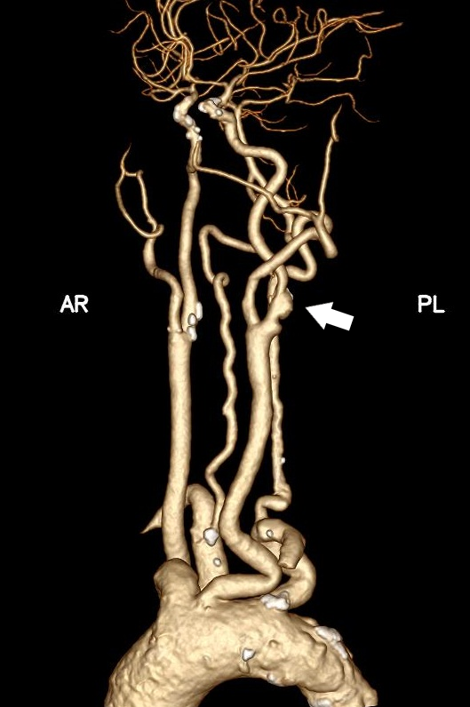 据悉,患者张某(化姓)因反复头晕就诊,检查后确诊为左侧颈内动脉重度狭窄,且主动脉弓为Ⅲ型弓,颈总动脉明显迂曲,且左侧颈动脉分叉位置较高,属于颈动脉狭窄治疗中较为复杂的解剖类型。若采用传统经股动脉颈动脉支架置入术,导管通过主动脉弓及扭曲血管难度大,脑栓塞风险高;若行颈动脉内膜剥脱术,则会因为分叉位置高、术野暴露困难,手术创伤和技术难度也明显增加。