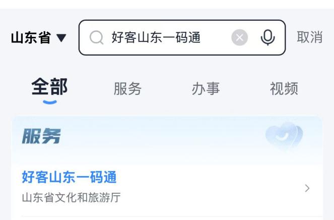 打开“爱山东”APP,首页搜索“好客山东一码通”,点击进入服务;