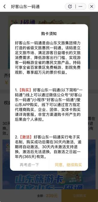 点击右下角“立即购买”,仔细阅读购卡须知并确认无误后,点击“同意,继续购买”,系统将自动跳转至支付页面,完成支付即视为购卡成功。