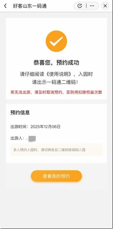 4.根据页面提示,准确选择游玩时间及游玩人员信息,点击“确认预约”,即可顺利完成相关景区的预约操作。