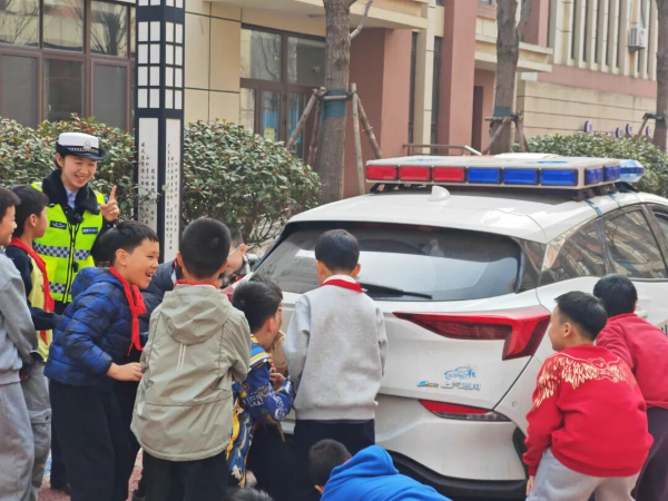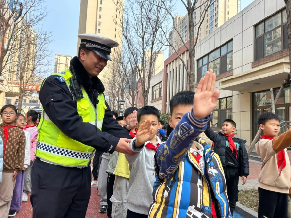 活动现场,民警结合小轿车、校车等学生日常接触的车型,通过实物讲解、现场演示、互动体验等方式,直观展示车辆视觉盲区的位置、危害及避险要点,让同学们亲身感受盲区危险,牢记“远离盲区、不靠近盲区”的安全准则。随后,民警带领同学们学习交通指挥手势,逐一拆解动作要领,并围绕步行安全、乘车规范等内容开展交通安全知识宣讲,用通俗易懂的语言讲解日常出行安全常识。