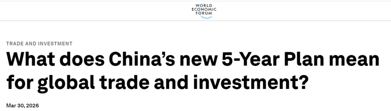 近日,世界经济论坛官方网站发表文章深入分析了“十五五”规划纲要对全球经济的影响。文章称,该规划纲要强调核心优先事项的持续发展,更加强调自力更生,同时与全球经济一体化保持平衡。