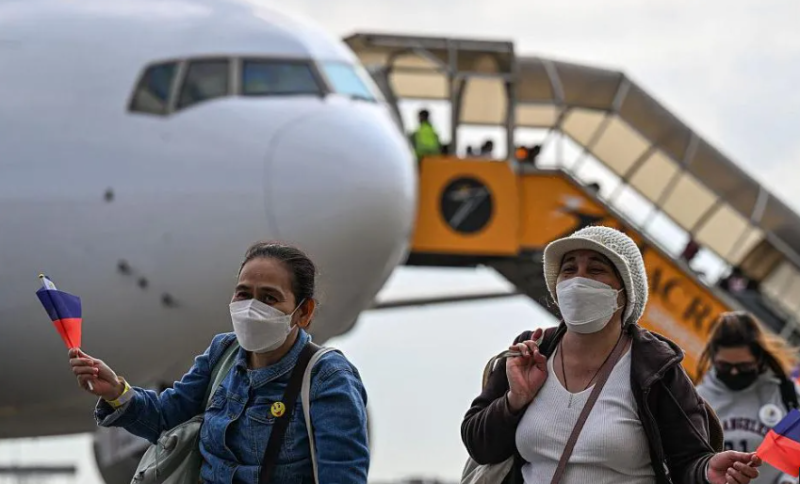 BBC报道截图:美以伊冲突爆发后,菲律宾的海外务工人员陆续从海湾地区返回家园。