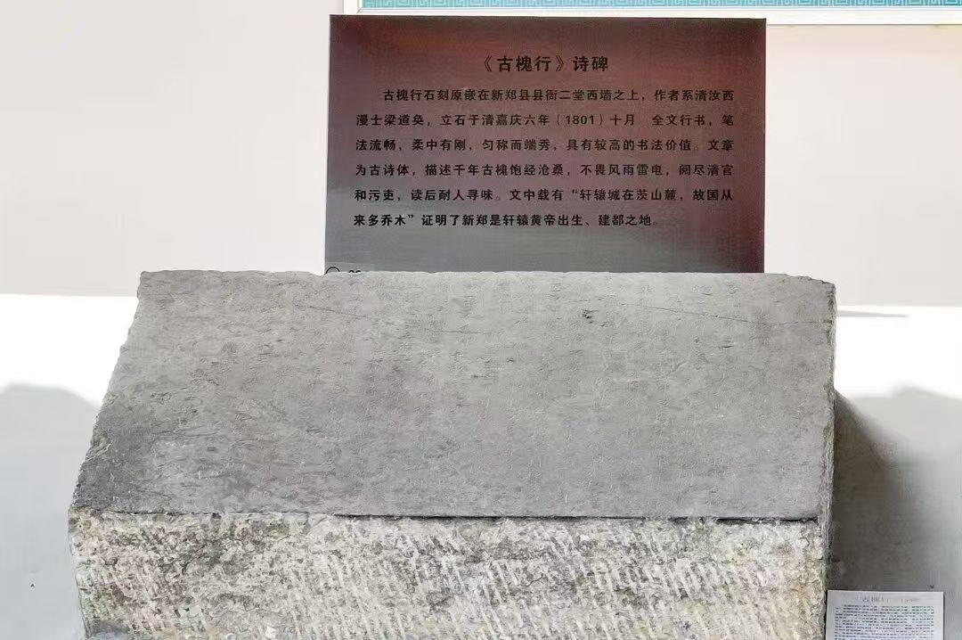 在新郑博物馆的碑廊里,一块青灰色的石碑刻着这样的文字。这篇名为“古槐行”的石碑刻于200多年前,为梁道奂所作。碑上的字迹虽历经风雨侵蚀,却依然可以辨认,这些文字不仅向世人揭示新郑作为黄帝故里的源远流长,也记录下了一棵古树的秘密。