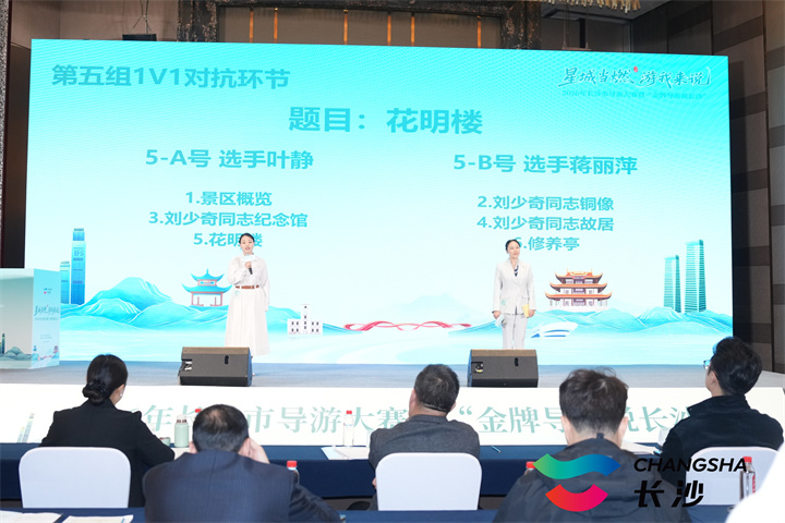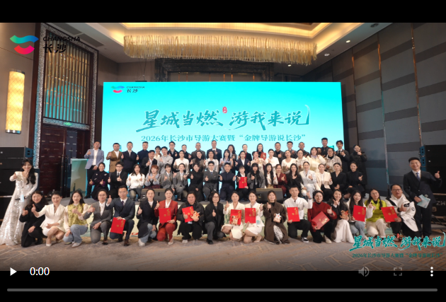 星辰在线4月1日讯(通讯员 章序)满腔热忱讲长沙故事,豪情作帆展导游风采。3月30日至31日,2026年长沙市导游大赛暨“金牌导游说长沙”活动在湖南佳兴世尊酒店举行。活动由长沙市文化旅游广电局主办,长沙市导游人员管理服务中心承办,旨在深入贯彻落实文化和旅游部关于加强导游队伍建设的工作要求,通过技能竞赛“上水平、优服务、树标杆”,进一步提升全市导游队伍专业素养,持续擦亮“快乐长沙、韵味星城”文旅品牌,为长沙文旅深度融合与高质量发展提供坚实的人才支撑。