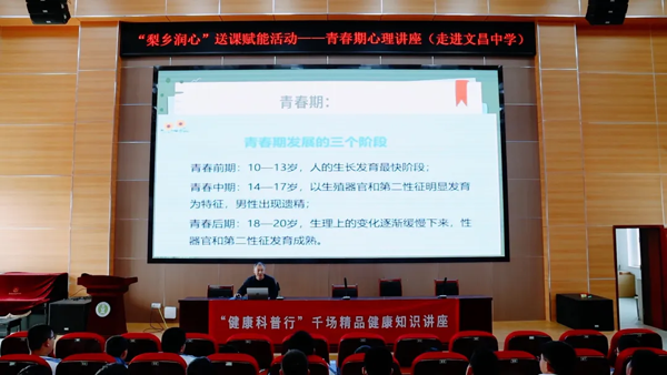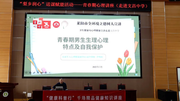 胶东在线4月3日讯(通讯员 周楠)日前,莱阳市卫生健康局结合2026年烟台市“名医话健康 全民提素养”系列科普活动及“健康科普行”千场精品健康知识讲座活动,联合市教育和体育局走进文昌中学,开展青春期生理心理健康专题讲座,为在校初中生送上专业的健康指导课。此次活动作为全市全环境立德树人宣讲系列活动的重要内容,聚焦青春期青少年身心发展特点,帮助学生科学认识成长变化,筑牢自我保护防线,助力青少年健康成长。
