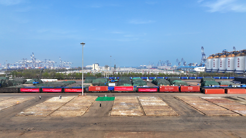 胶东在线4月15日讯(记者 贾楚航)4月15日,首列满载韩国进口集装箱货物的“仁川—烟台—霍尔果斯—中亚”跨境海铁联运班列自烟台顺利启运。