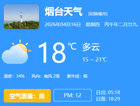 东部海域(开发区至牟平区)将有0.4米的小浪,风浪向东南;平均水温:10.8-12.3℃;