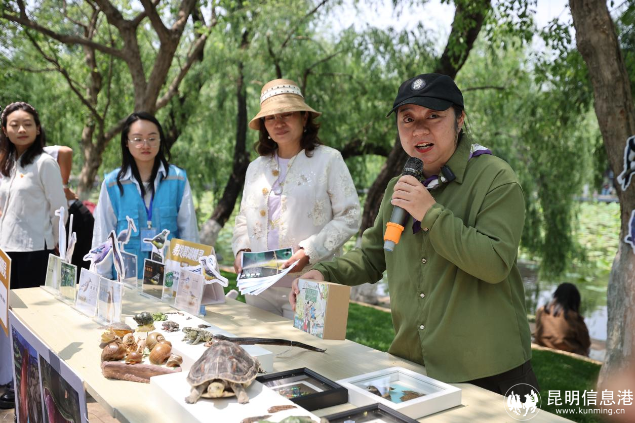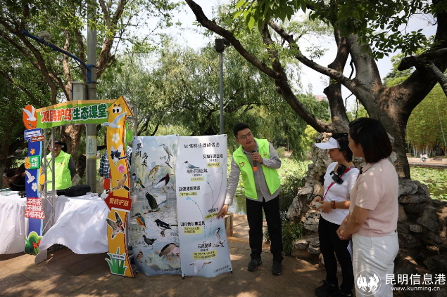 省生态环境厅工作人员结合红嘴鸥迁徙与生物多样性保护进行专业讲解,并引导参与者通过VR设备沉浸式感受生态保护一线的工作场景;科普专家李维薇博士借助入侵物种标本墙,直观讲解巴西龟、福寿螺等外来物种对湿地生态的危害。网络博主“文旅小兔姐”全程参与互动,结合自身在洱源茈碧湖畔观候鸟的体验,与专家共同探讨城市湿地与自然保护地生态守护的异同,以个人视角传递“尊重自然、守护生态”的理念共鸣。通过实物展示、场景模拟、趣味问答与嘉宾互动,让市民直观认识生物多样性保护、外来物种入侵危害、生态环境保护等知识,读懂生态安全与城市宜居、民生福祉的紧密联系,引导市民自觉成为生态安全的守护者。