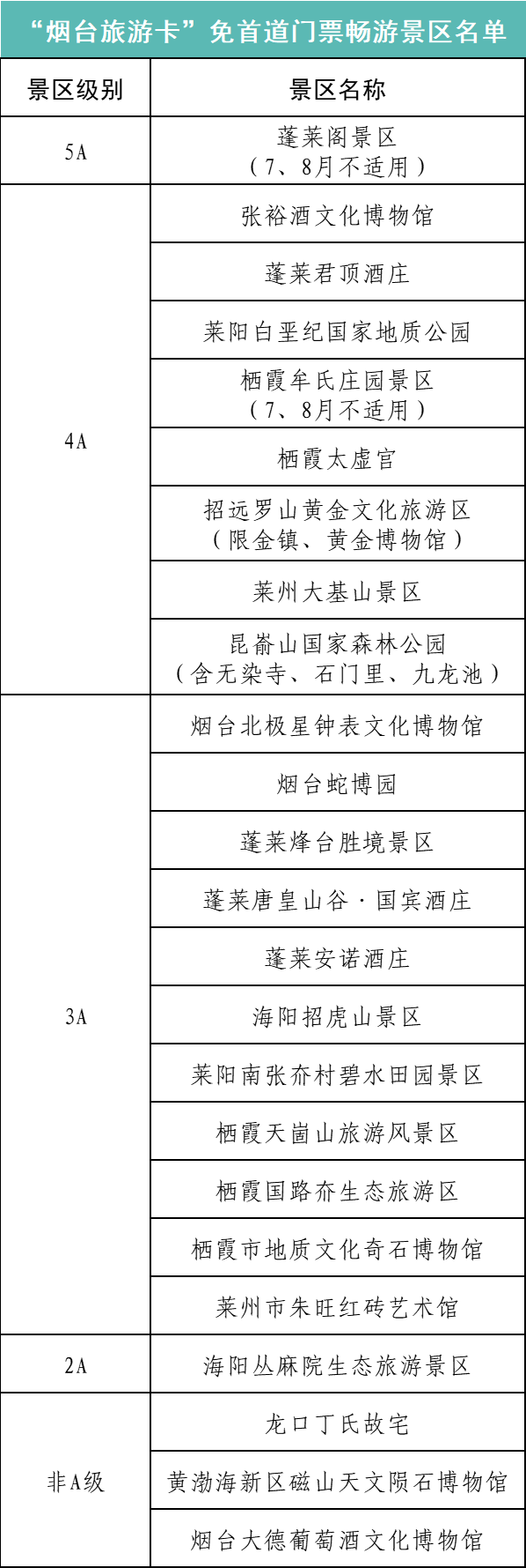 首批纳入烟台旅游卡的收费旅游景区,一共24家,类型多到挑花眼,老中青幼全都能找到心头好!