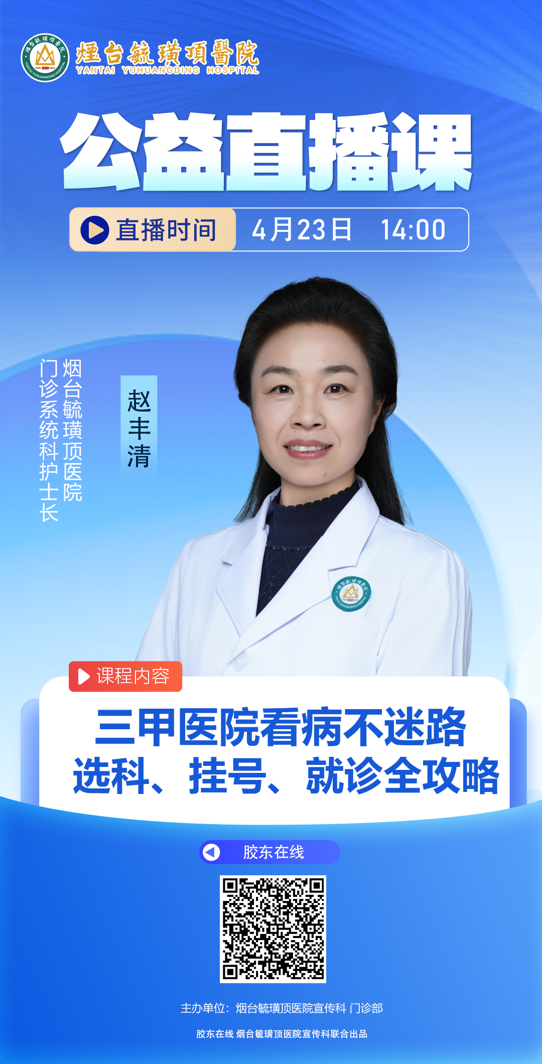 为了帮大家彻底告别看病 “迷路”,少走弯路、少花冤枉钱,烟台毓璜顶医院门诊健康讲堂系列之十四——“三甲医院看病不迷路 选科、挂号、就诊全攻略”即将开讲!烟台毓璜顶医院门诊系统科护士长赵丰清主讲,把最实用的就医技巧一次性讲透,让你轻松看懂、快速学会、高效就诊。