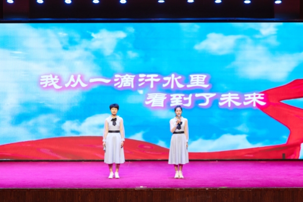 活动以打击鼓表演《象王行》拉开序幕,激昂的鼓点奏响阅读序曲。随后,烟台高新区海天文化书院院长吕永进、青苗阅读中心儿童书房主理人郭苗青、实验中学学生王翊嘉作为阅读推广人代表,共同宣读了《全民阅读倡议书》,呼吁全区市民以书为友、与经典同行。实验中学学生朱江昕玥、肖子悠带来的朗诵《我从一滴汗水里看到了未来》,以青春之声诠释了阅读的力量。