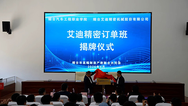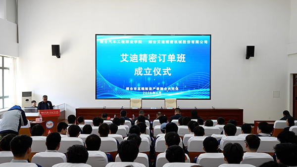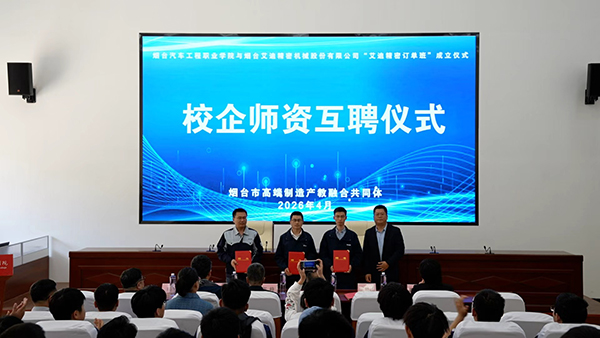 为深入推进产教融合、校企协同育人,扎实落地烟台市高端制造产教融合共同体建设任务,4月28日,烟台汽车工程职业学院与烟台艾迪精密机械股份有限公司“艾迪精密订单班”成立仪式在学院B1第一会议室举行。