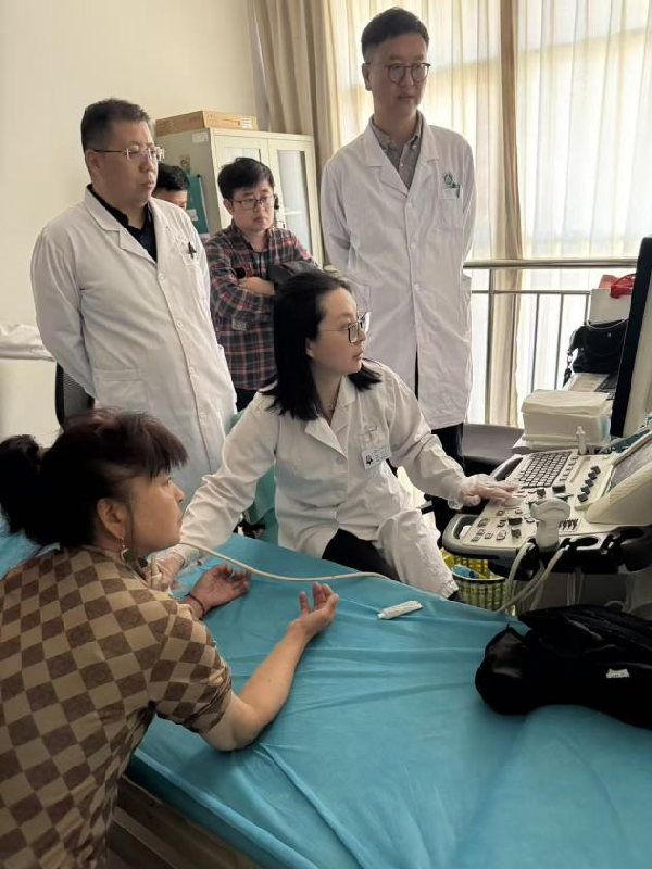 此次巡诊汇聚多学科骨干力量,由血管外科刘国龙副主任医师、肾内科吴道诩副主任医师、范新迎医师、甲状腺外科刘洋副主任医师、超声科孙铭微副主任医师及血液净化科专科护士尉俊霞组成专业团队,搭建起“评估-诊断-治疗-护理”全流程诊疗闭环,一站式解决血透患者通路难题。